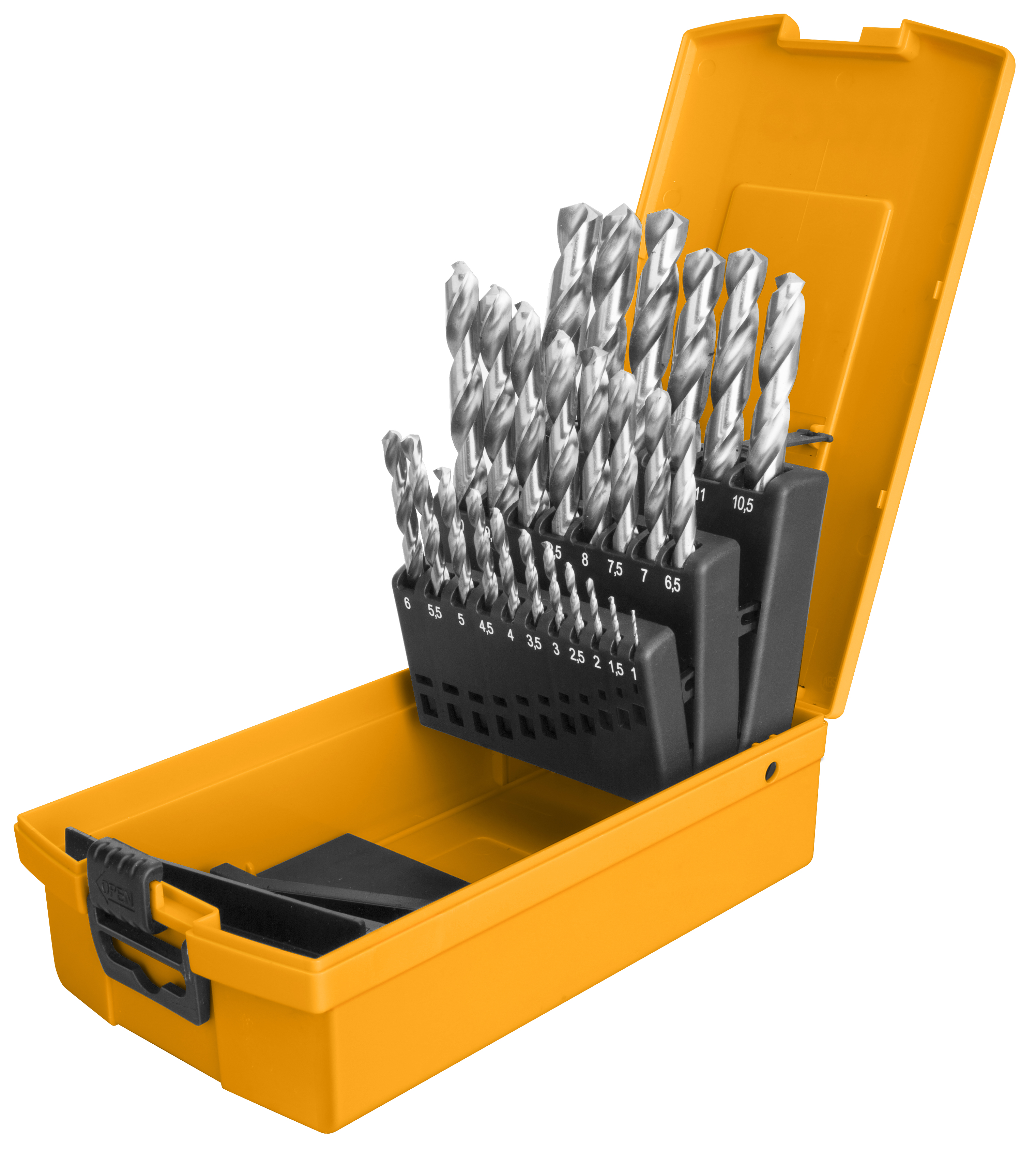 Ingco set burgija HSS M2 15/1 uključuje polirane M2 burgije za sve vrste bušenja.